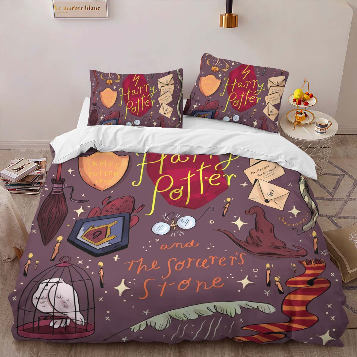 Harry Potter Symbole Eule Sprechender Hut Brief Kinderbettwäsche – Bettwäsche