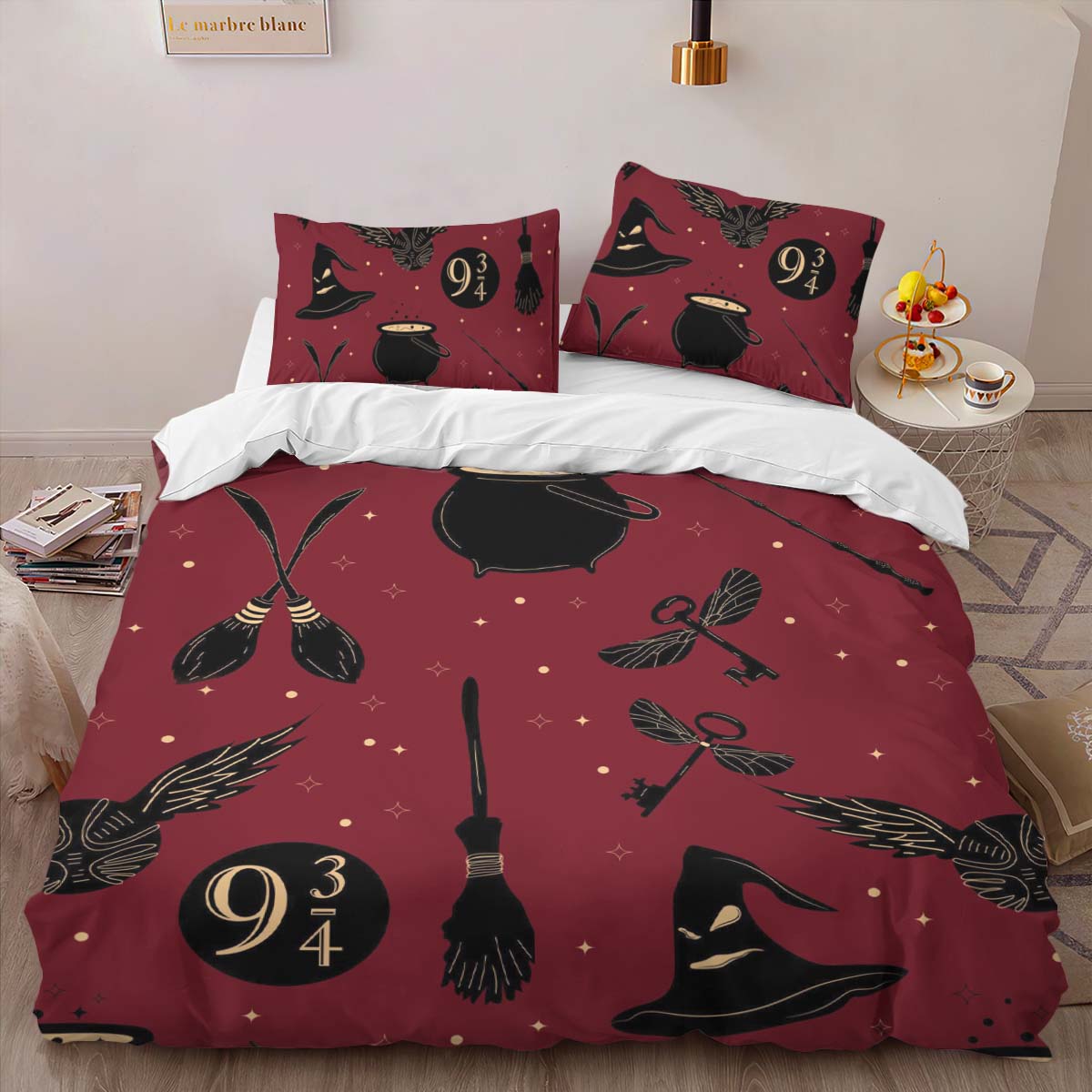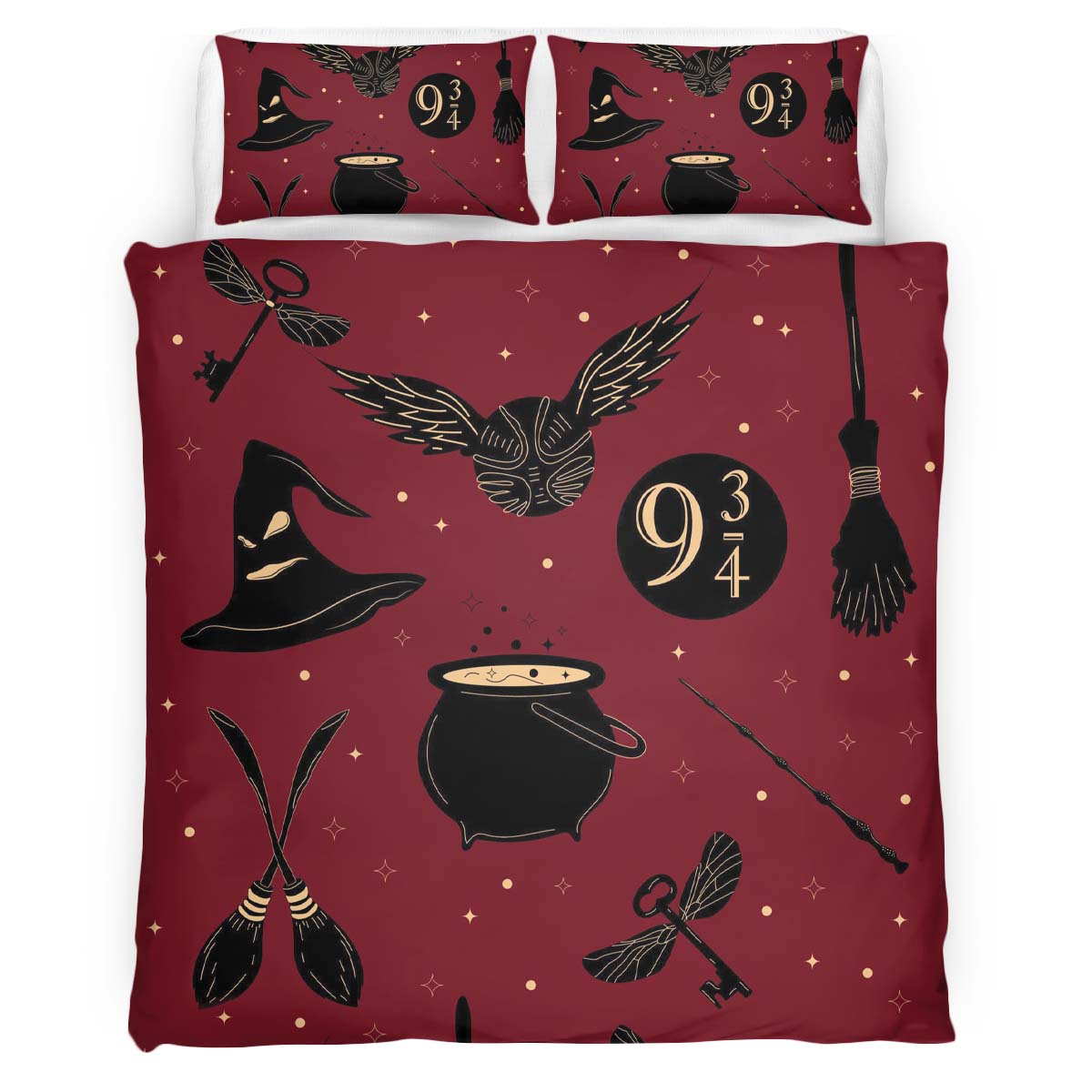 Magische Dinge Harry Potter Symbole Nimbus 2000 Sprechender Hut Kinderbettwäsche – Bettwäsche