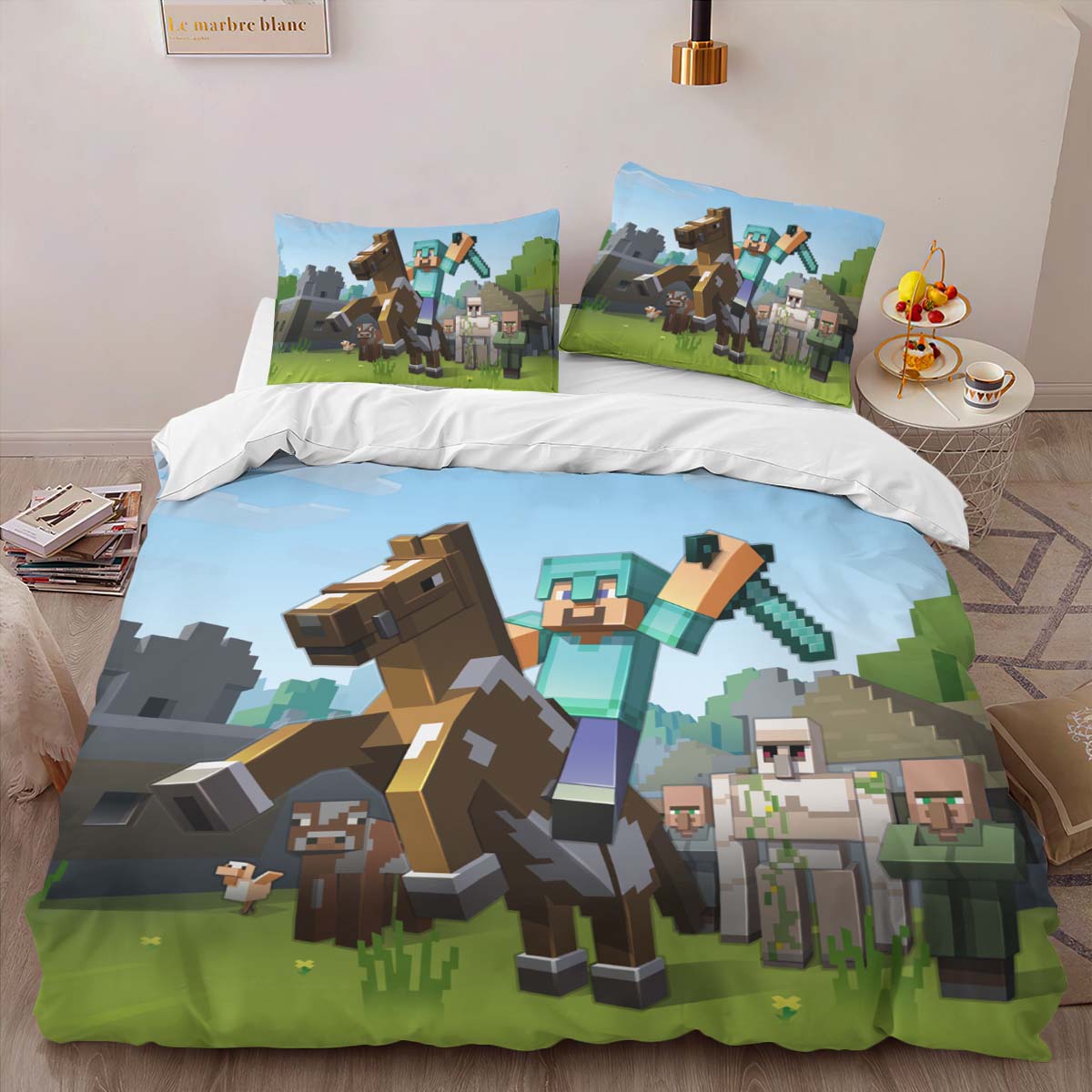 Minecraft Steve reitet Pferd mit einem Schwert Kinderbettwäsche – Bettwäsche