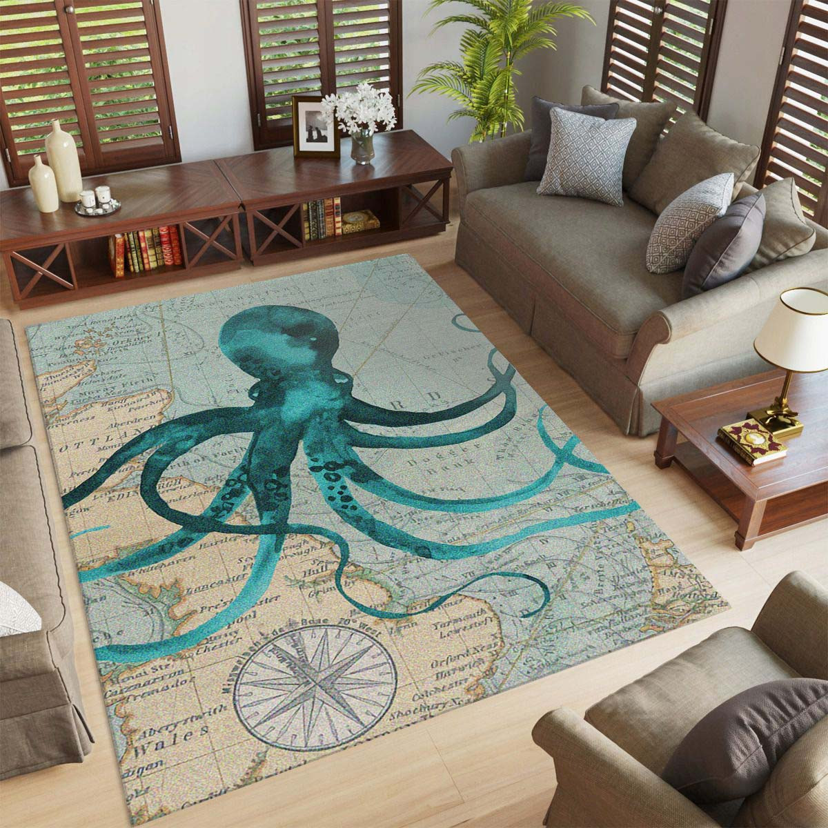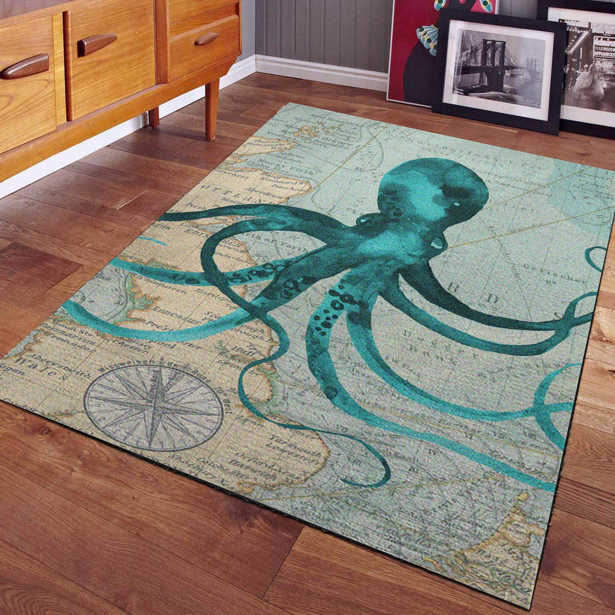 Nautische Aquarell-Krake Teppich