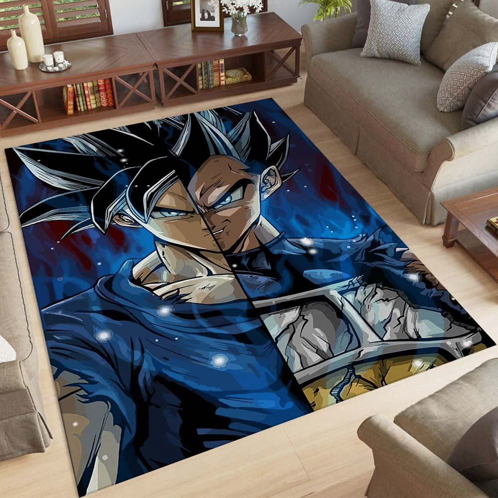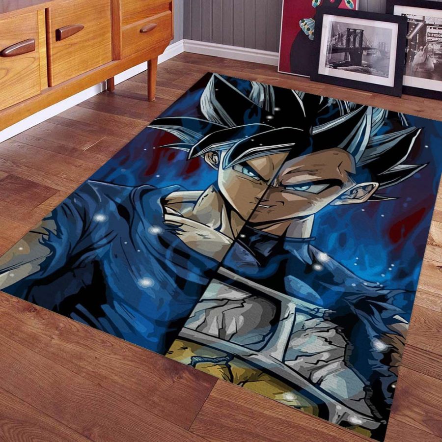 Der Teppich „Vegeta Dragon Ball 1001 Teppich“ ist ein Kunstwerk, das die mächtigen und übermenschlichen Bilder von Goku und Vegeta im Ultra Instinct-Zustand aus Dragon Ball Z wiedergibt und somit einen einzigartigen und stilvollen Akzent in Ihrem Wohnraum setzt.