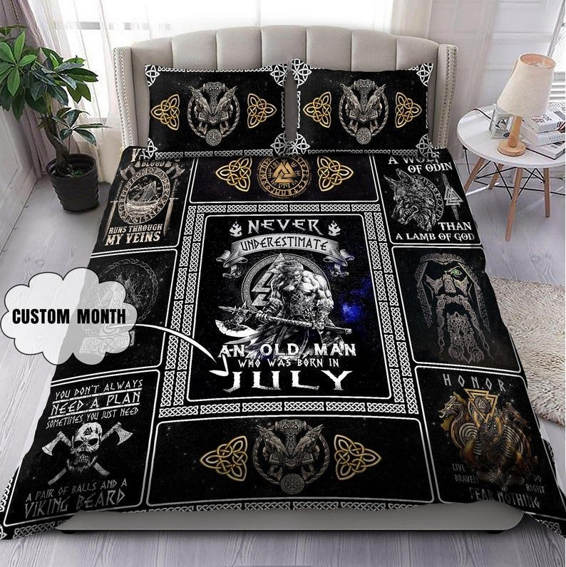 Viking Scandinavian Ravens Odin Celtic Valhalla Axt unterschätzt niemals einen alten Mann, der am 2. Juli geboren wurde Kinderbettwäsche – Bettwäsche